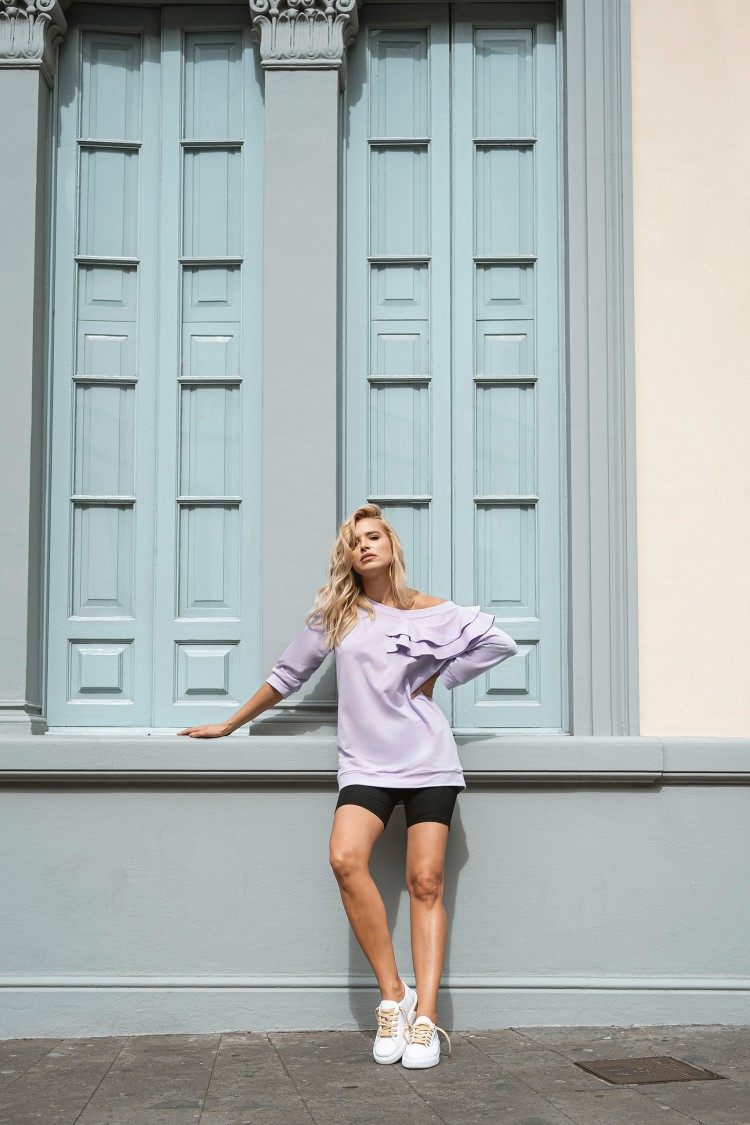 Bluzka z najwyższej jakości bawełny organicznej. Bardzo wygodna w noszeniu. Falbanka lekko opadająca na jedno ramię wygląda finezyjnie, dzięki czemu każda z nas będzie czuła się wyjątkowo.